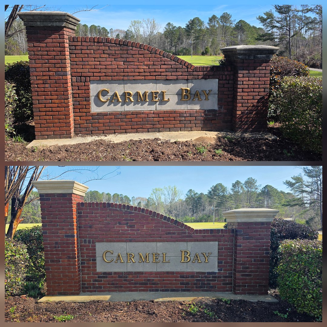 E5M Hydro Wash, LLC was hired by the Carmel Bay HOA to perform soft washing on the neighborhood signs and the guard house in Northport, AL. The board reached out after a member who is a regular, returning customer recommended our services to them.
