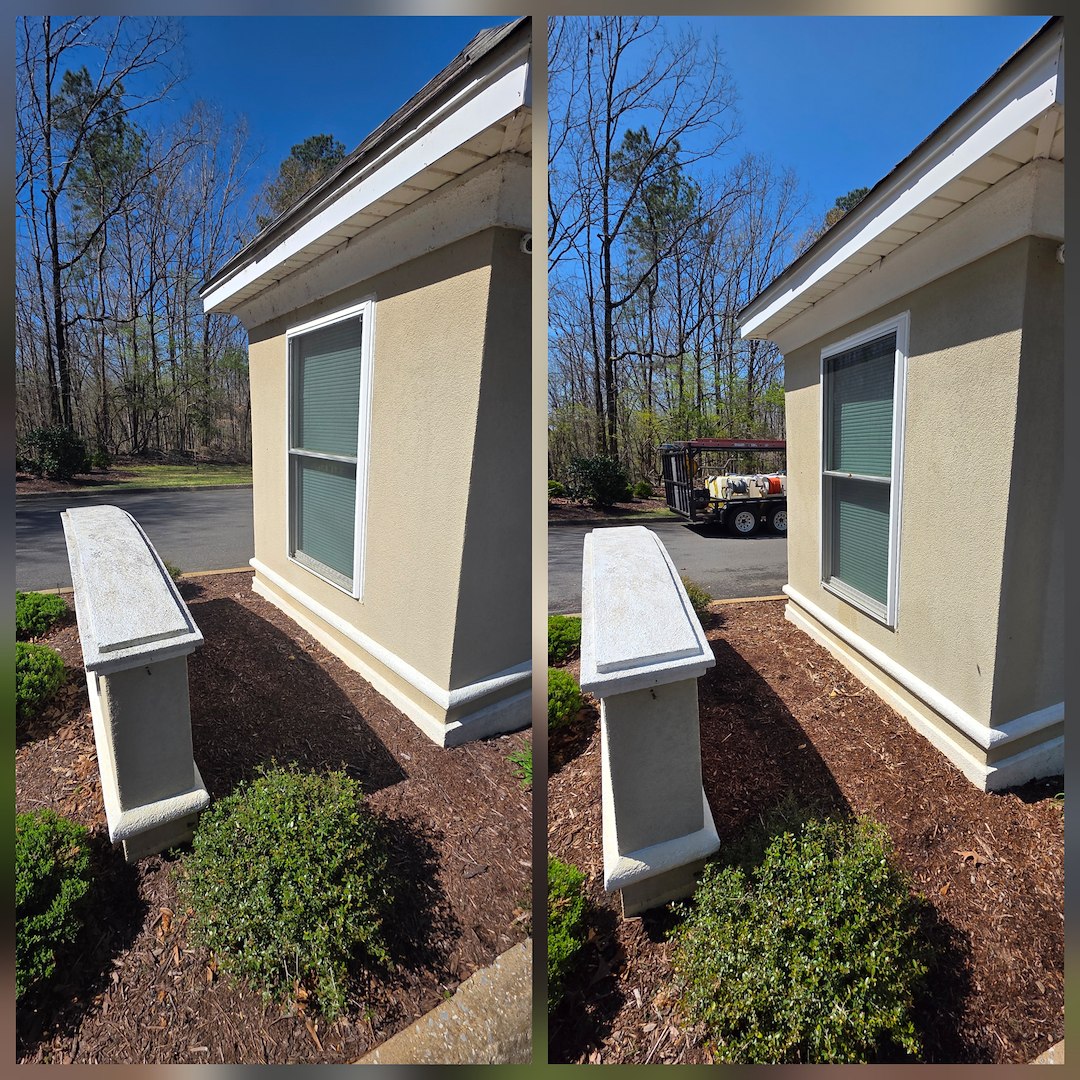 Soft washing is a practical option for signs and entry structures that need cleaning but cannot handle high-pressure methods. Using the soft wash process allowed us to treat the surfaces carefully while addressing the visible buildup that had accrued over time.