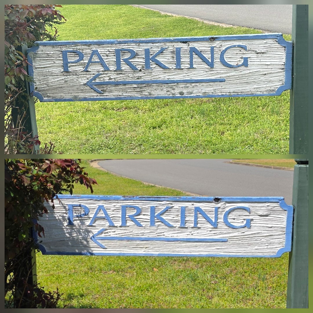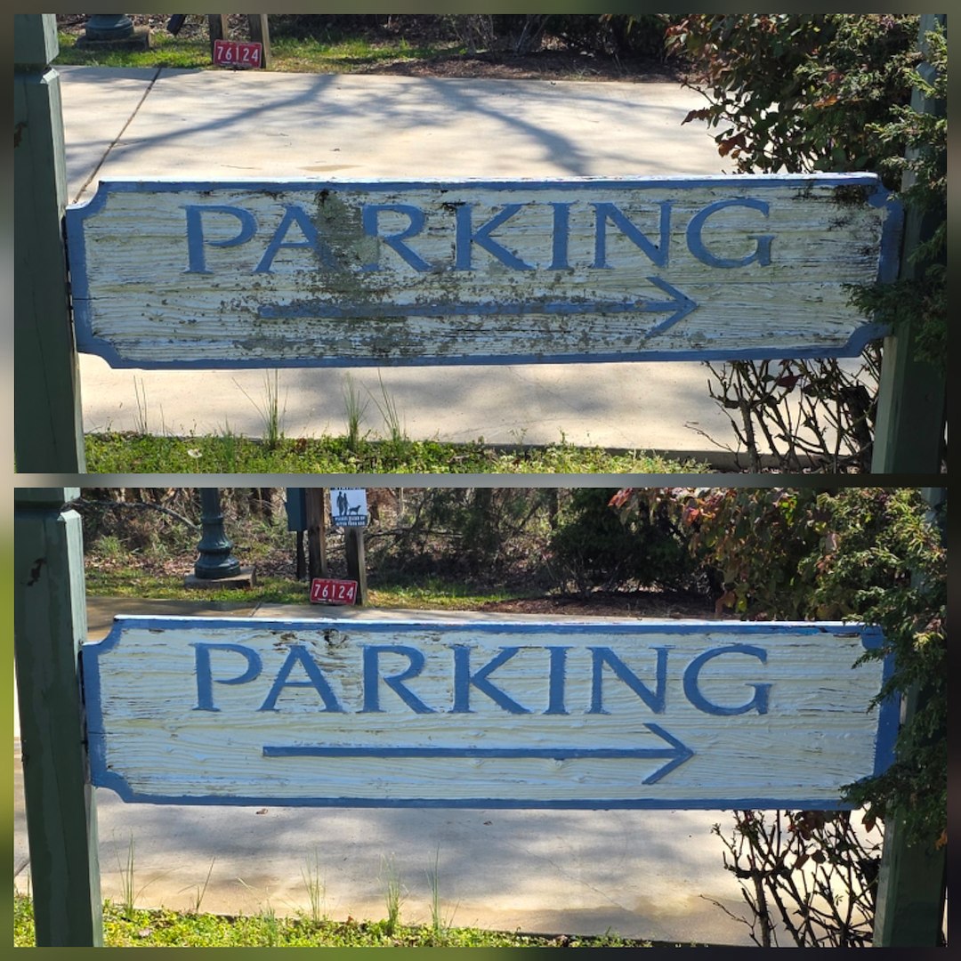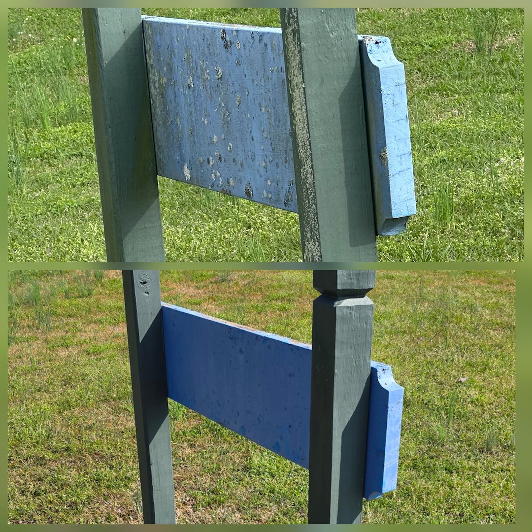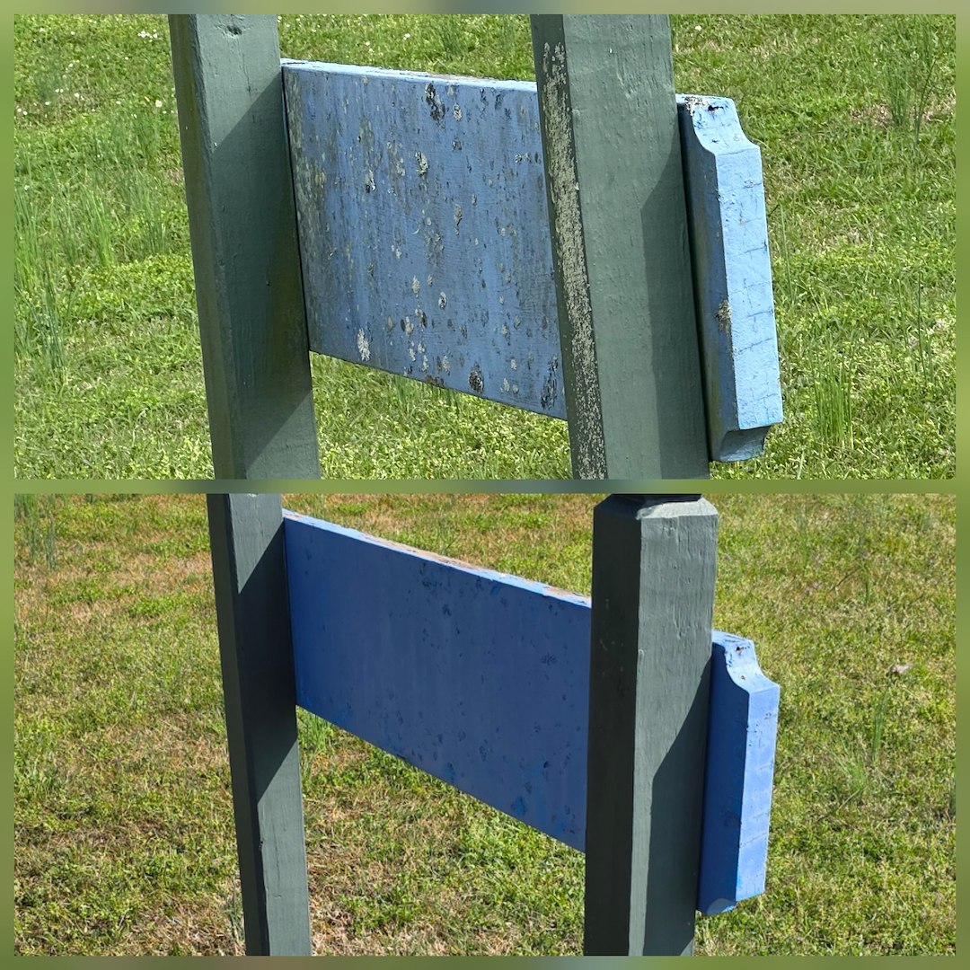 Because the HOA asked specifically for a soft wash, we used low-pressure cleaning methods suited to delicate surfaces. This approach is meant to clean effectively while avoiding damage to paint, wood, and sign materials. We followed the plan agreed upon with the HOA board and the recommending resident.