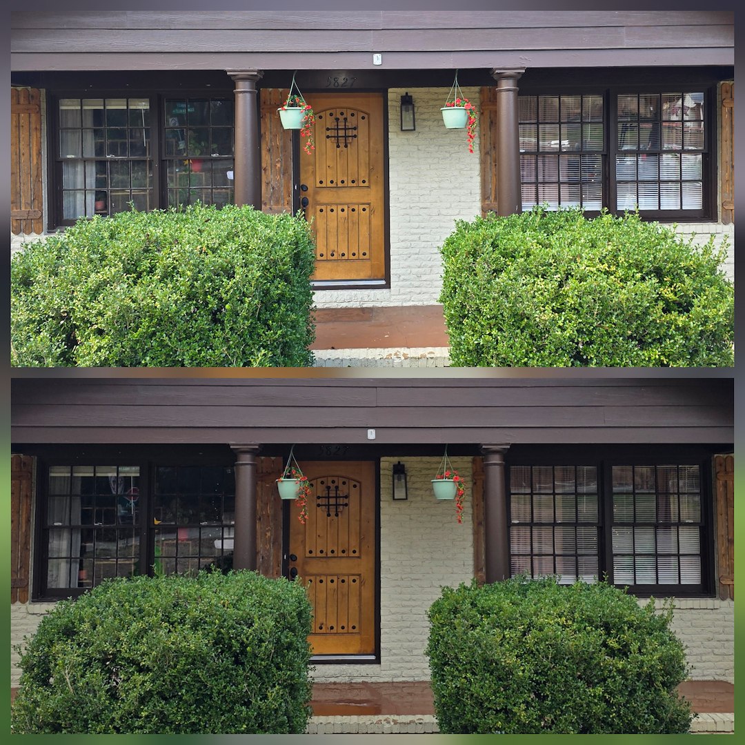 The scope of this visit was focused: we cleaned all accessible exterior windows and the concrete walkway leading to the home. For the windows we worked to remove dirt, fingerprints, and general buildup from glass and frames so the homeowner could enjoy clearer sight lines and more natural light. For the concrete walkway we removed surface grime and deposits that had accumulated over time, restoring a cleaner appearance to the entry path.