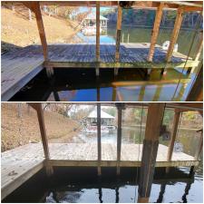 Customer called us to come clean all of the concrete surrounding his home, his boathouse, and his very long asphalt driveway. We used our soft wash system to apply a pre-treatment to his concrete and the wood on the boathouse to bring those two back to looking presentable again. Since high pressure will damage asphalt, we opted to use the soft wash system once again to apply the cleaning solution. We then rinsed the asphalt driveway off with very low pressure comparable to what would come out of the spigot on the side of the house. The results were very pleasing to the customer.