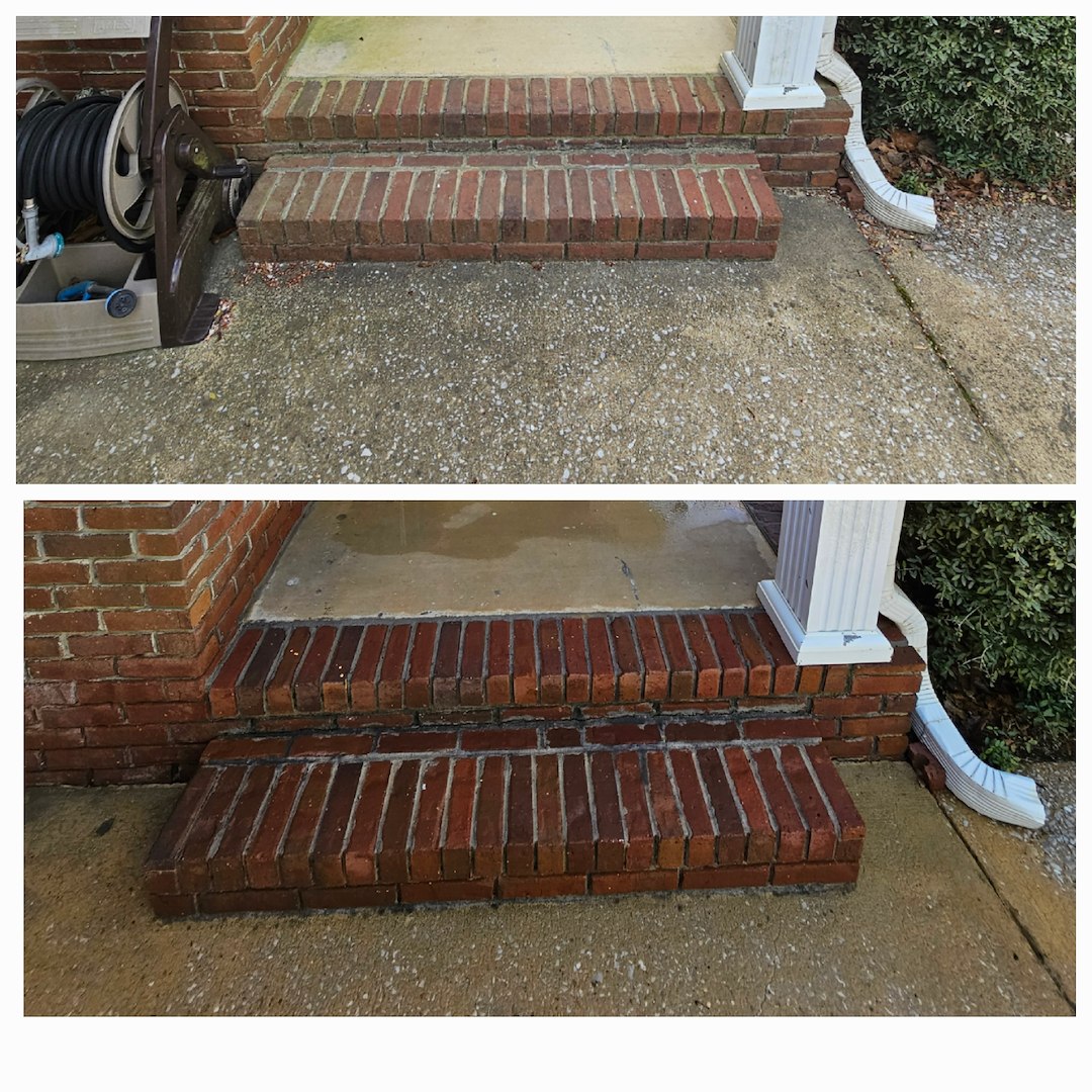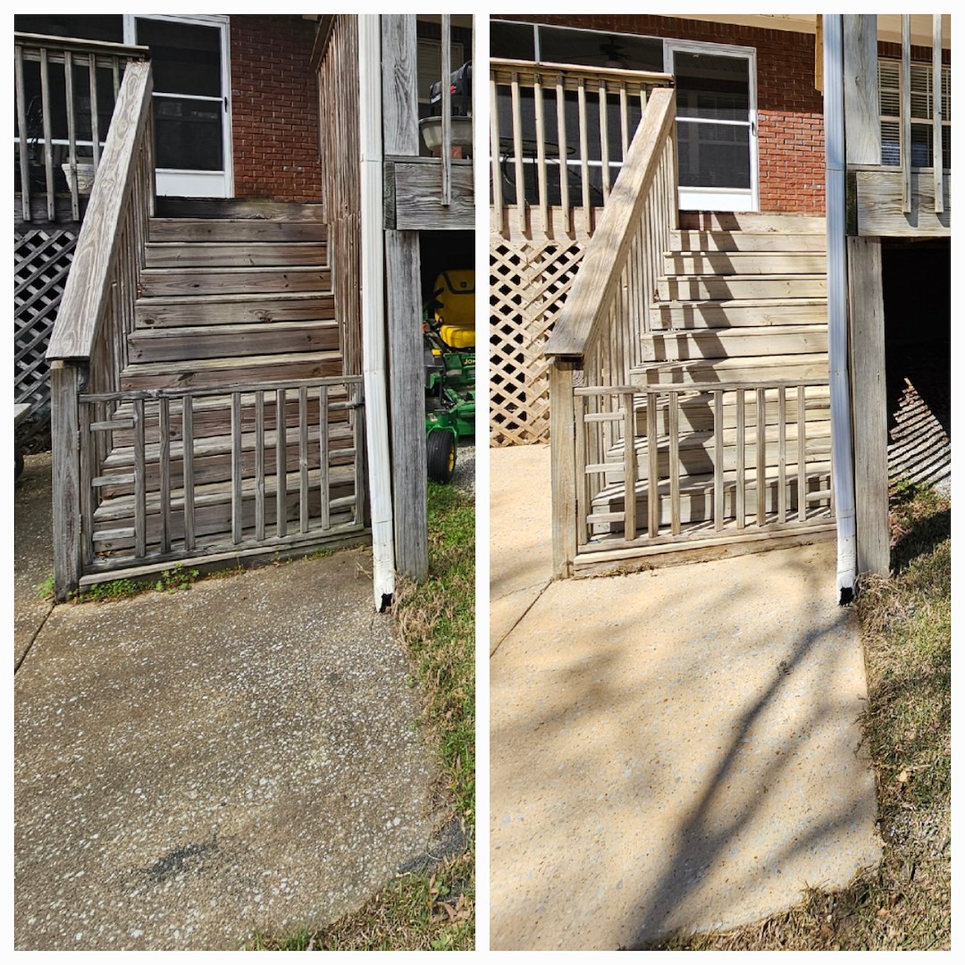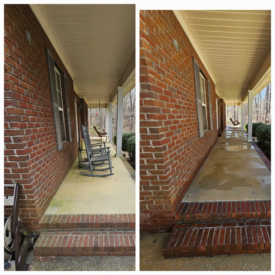 This home in Meadowbrook, AL was in need of a concrete cleaning, wood cleaning, and a metal building cleaning. The customer hired us to provide all of these services at his home. Removing the algae and grime from the concrete not only made the concrete areas more attractive, but also safer as the algae can make concrete quite slippery when wet. Cleaning wood is a delicate process mainly because it's important to know which chemical to use for certain types of wood. Keeping wood cleaned of algae is the same as concrete as it too can get quite slippery when it gets wet. For the metal building, We cleaned it by using our low pressure soft wash system as to not damage the metal or the paint on the sides of the building that often comes when the unexperienced attempt cleanings with high pressure. All in all, everything went as planned and the customer was extremely happy with all of the work that was performed.