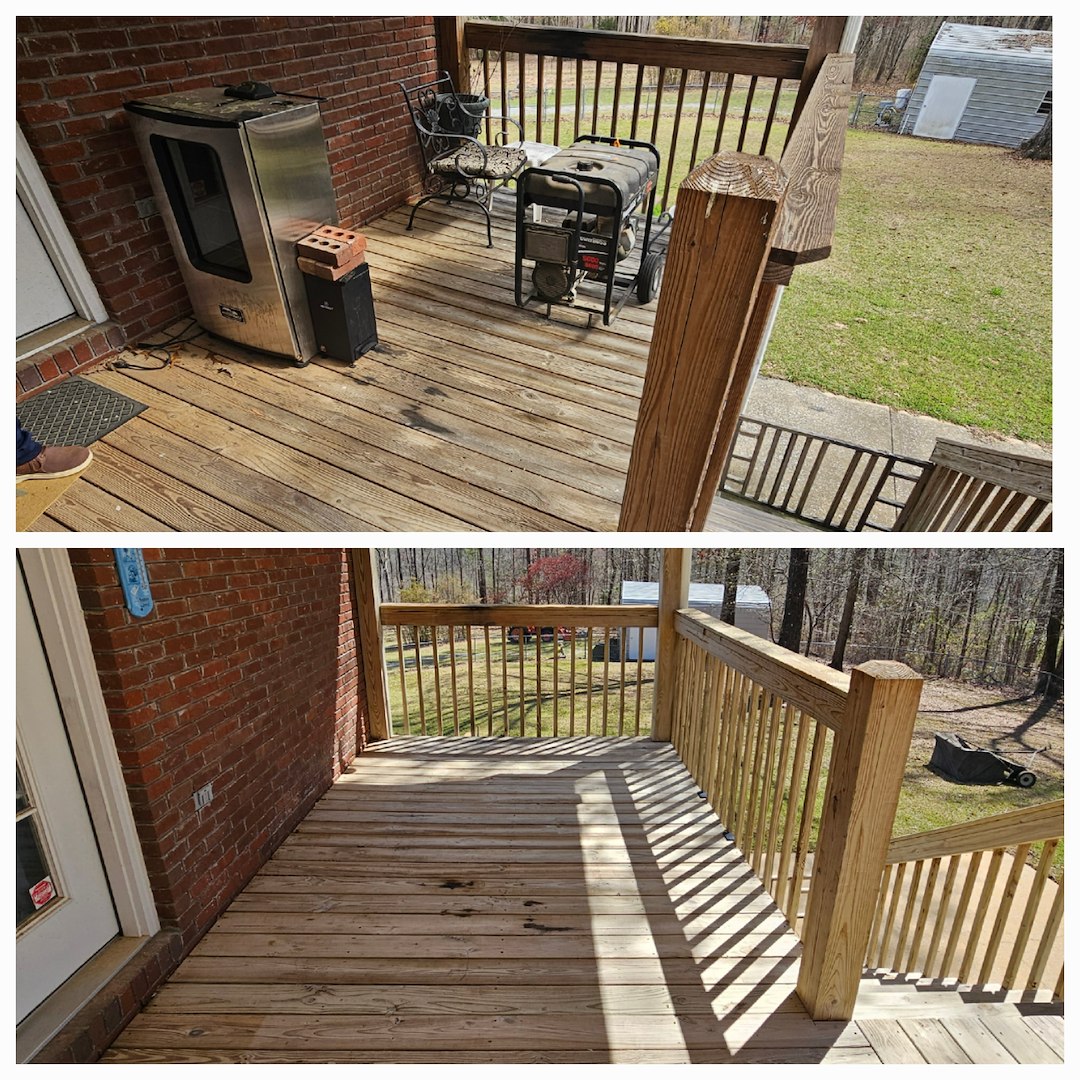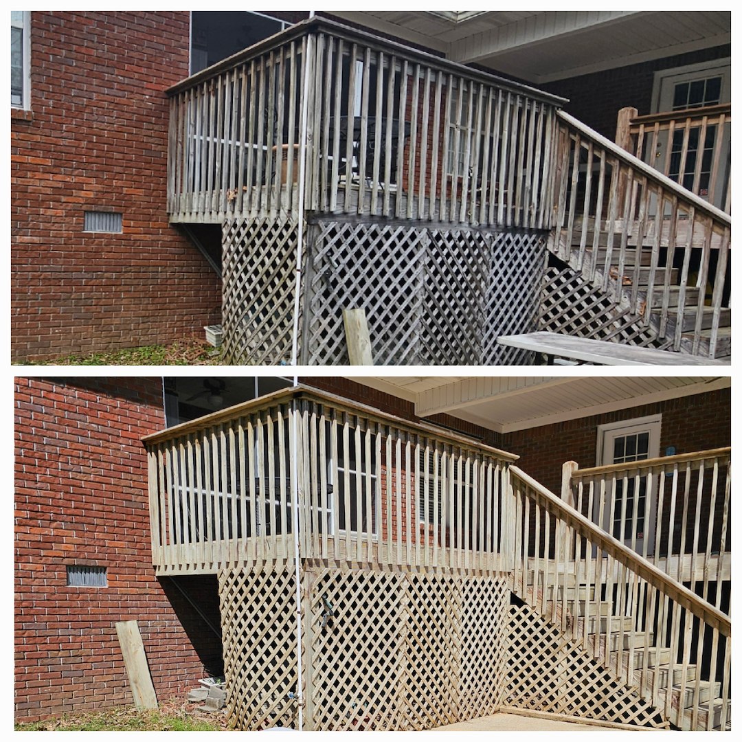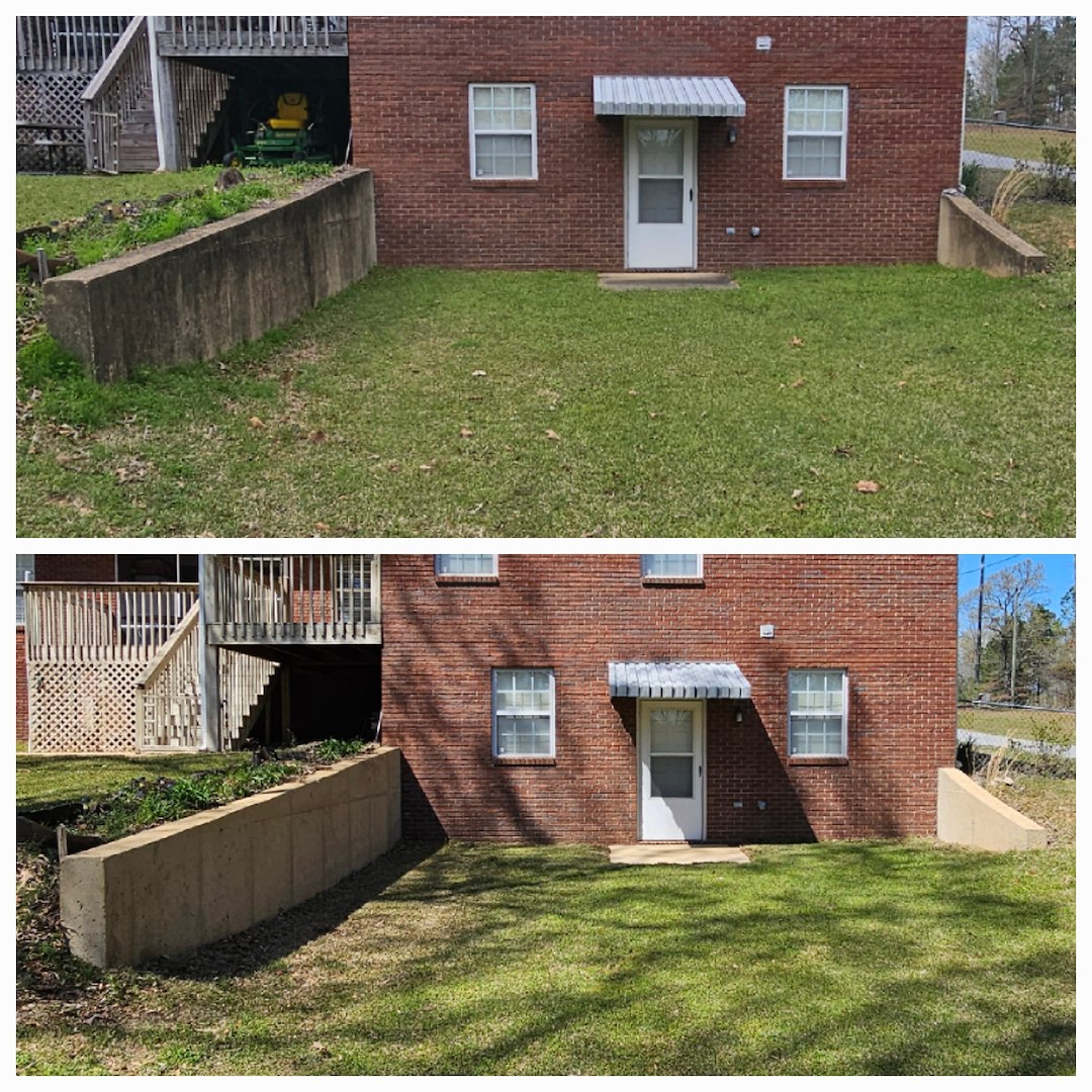 This home in Meadowbrook, AL was in need of a concrete cleaning, wood cleaning, and a metal building cleaning. The customer hired us to provide all of these services at his home. Removing the algae and grime from the concrete not only made the concrete areas more attractive, but also safer as the algae can make concrete quite slippery when wet. Cleaning wood is a delicate process mainly because it's important to know which chemical to use for certain types of wood. Keeping wood cleaned of algae is the same as concrete as it too can get quite slippery when it gets wet. For the metal building, We cleaned it by using our low pressure soft wash system as to not damage the metal or the paint on the sides of the building that often comes when the unexperienced attempt cleanings with high pressure. All in all, everything went as planned and the customer was extremely happy with all of the work that was performed.