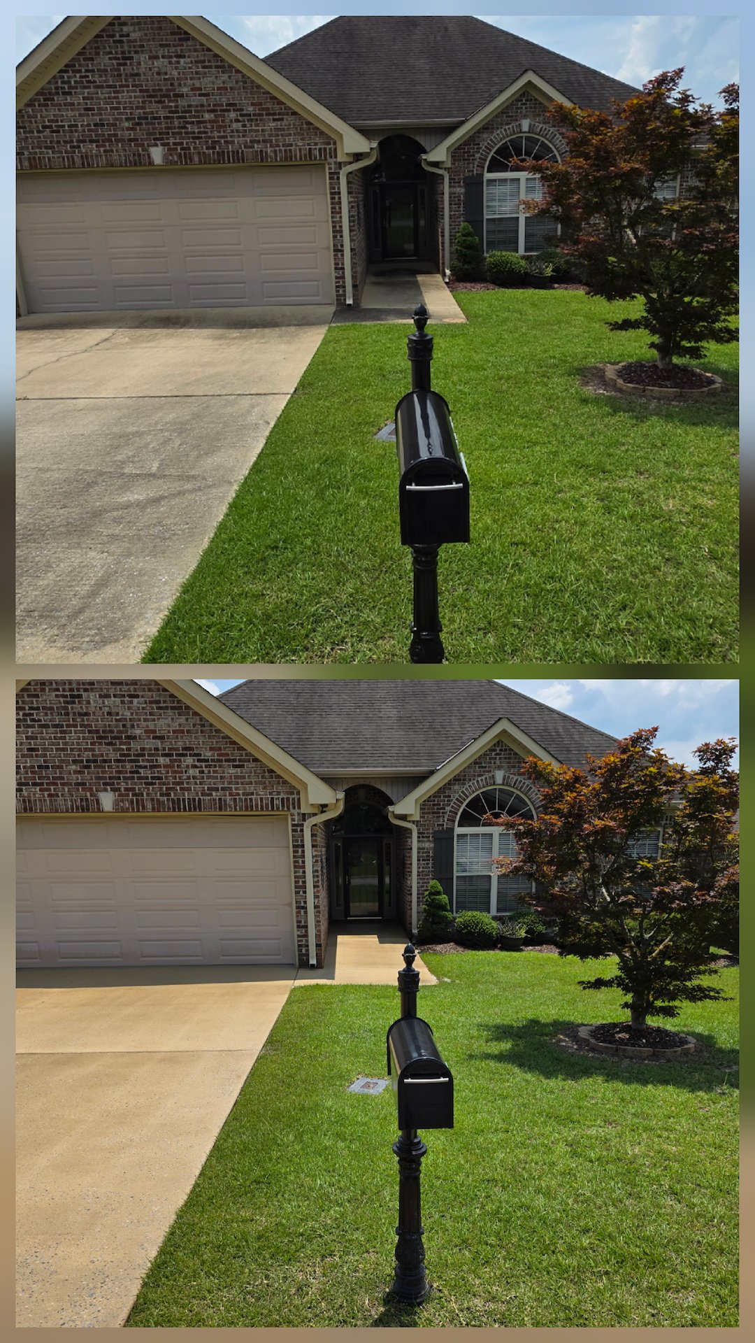 This concrete cleaning was for a customer in Northport, AL. The customer called and stated that she wanted us to do the concrete cleaning for her driveway, walkway, and curbs again because of how well her concrete looked the last time she hired us. We stated that we'd be happy to and gave her a few dates to choose from. After she settled on one of the available dates, we scheduled her concrete cleaning.