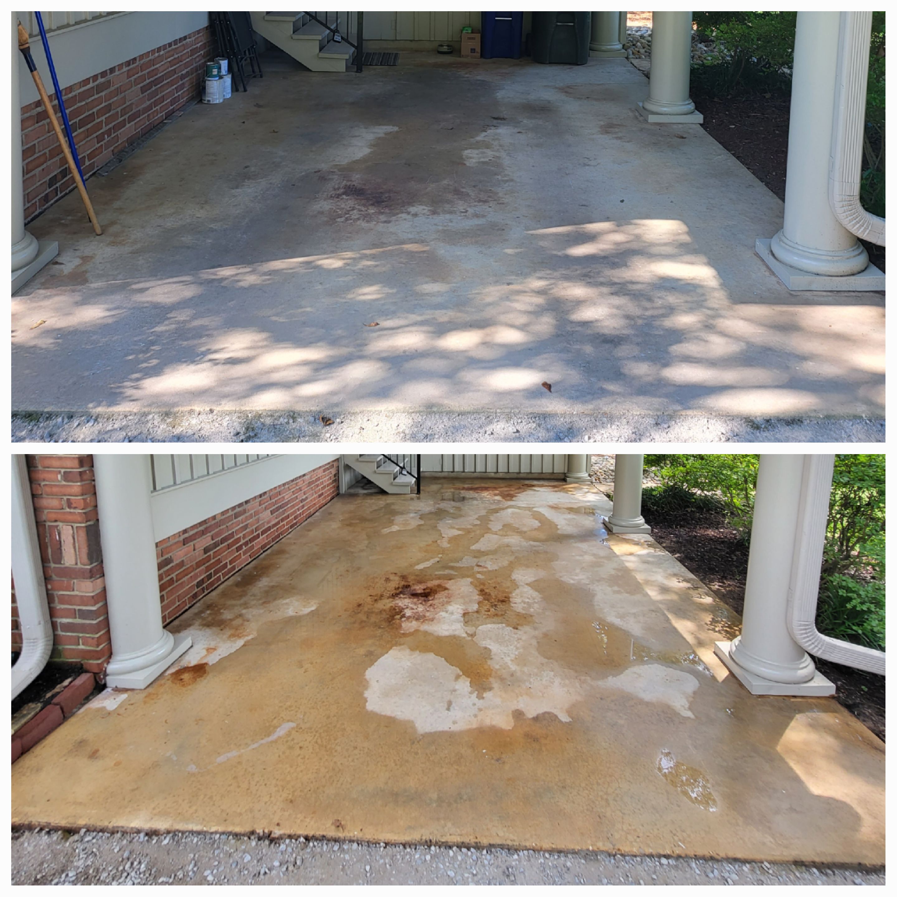 On the day of the cleaning, we quickly went to work preparing his home and lot for the work ahead by watering the grass to protect it from the chemical cleaner we would be using. In just a few short hours, the once dirt and grime ridden patio and concrete were clean and looking it's best. The customer stated that he was glad that he found us and that we've never let him down. He thanked us for our work and we left the customer with his freshly cleaned patio and carport.