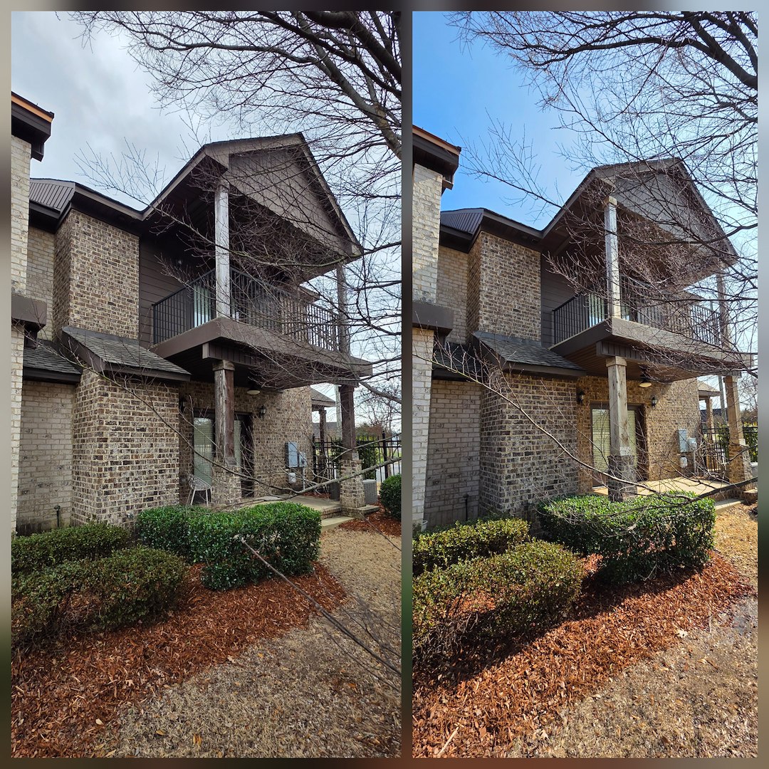 A returning customer called E5M Hydro Wash, LLC in Tuscaloosa, AL after buying a townhouse near the University of Alabama campus. They planned to rent the unit and wanted the property looking its best before new tenants moved in, so they requested a house washing, concrete cleaning, and a wood cleaning of the unit.