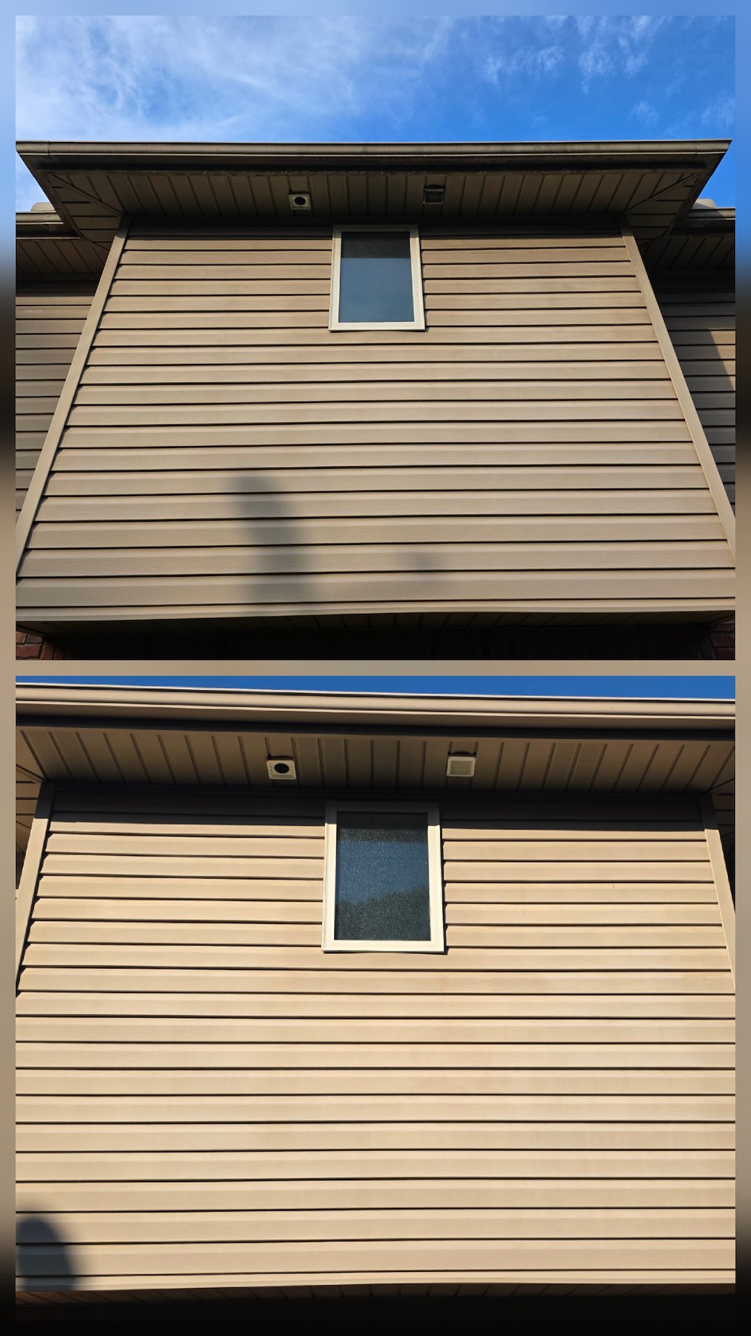 On the day of the cleaning, the crew tasked to take care of this job quickly went to work washing the exterior walls of the home. Next, they moved their attention to the cleaning of the wood, and then to the cleaning of the concrete. We like to clean areas of a home in a top-down fashion. This ensures more cleaning solution coverage for for a longer amount of time. By keeping the solution in contact with the surface being cleaned, the chemical solution has longer to work and do what it was intended for. This home's siding, wood, and concrete looked as good as new.