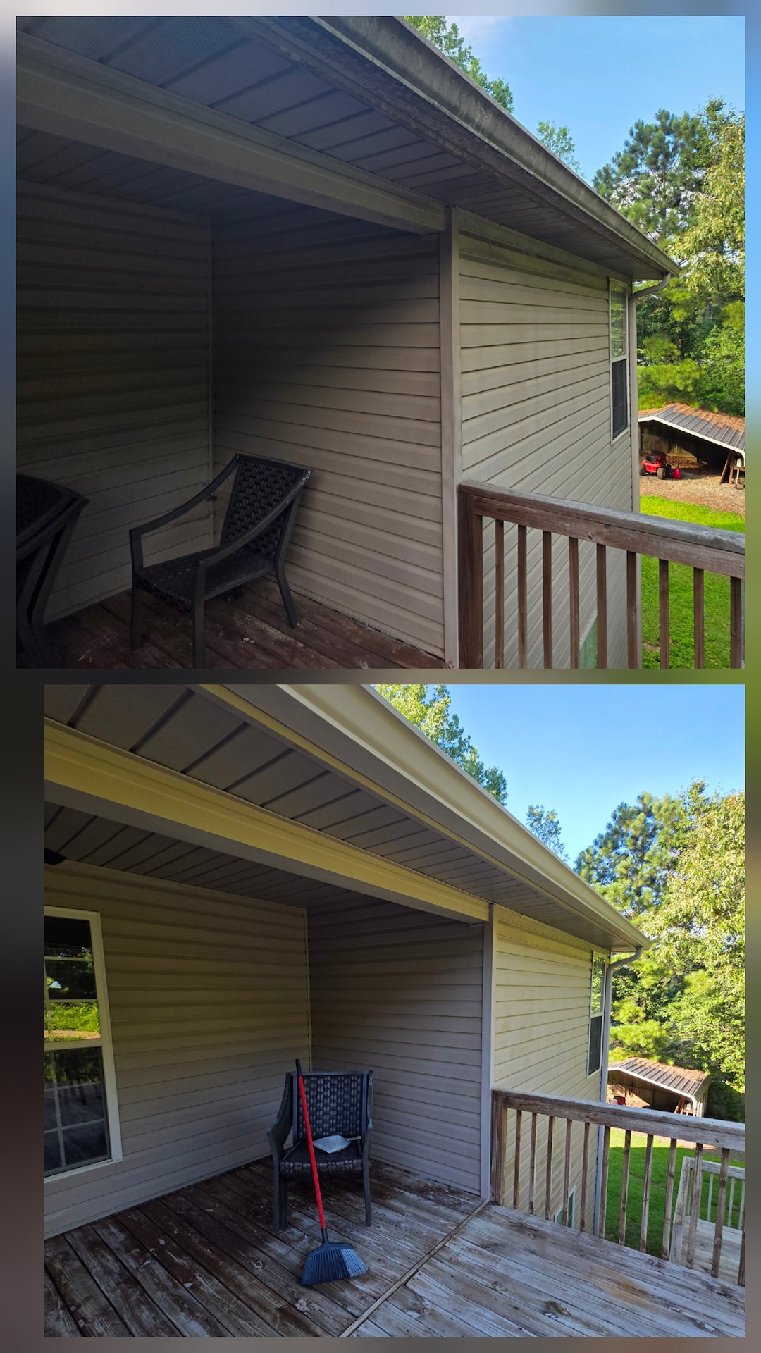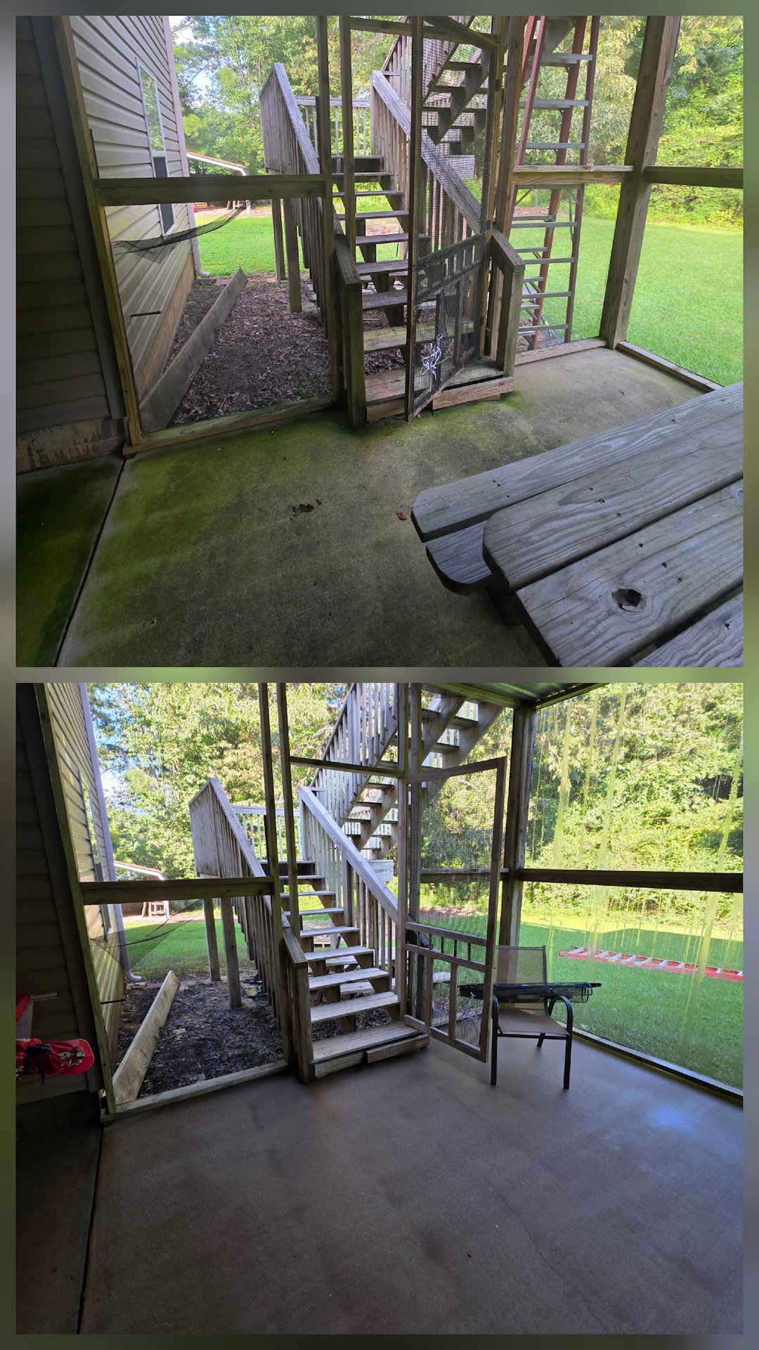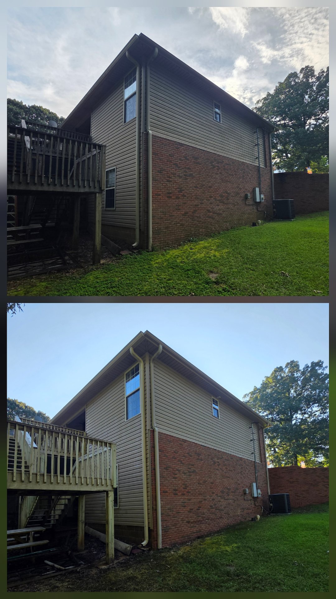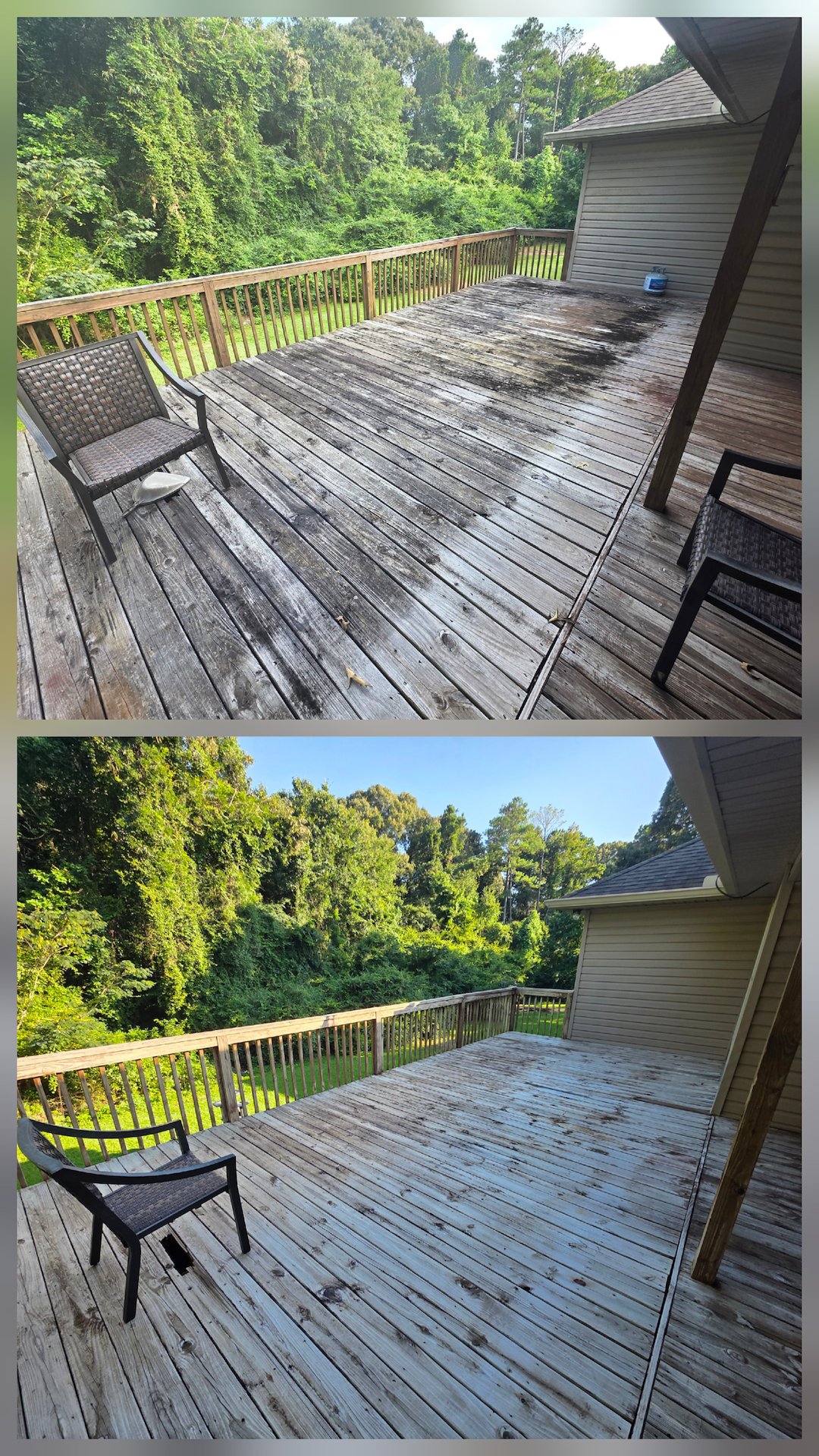 A customer in Northport, AL called to order a package of services. This particular customer wanted a house washing, wood cleaning, and a concrete cleaning for his home. The customer stated that the home's exterior was somewhat neglected over this last few years while taking care of a loved one who had recently passed. The customer stated that he was starting to get around to all of the things that needed to be taken care of, but realized real quick that this was not a job that he could take on while also running his own business. We assured him that we'd get him taken care of, and after sending him the quote, he accepted and the job was scheduled.