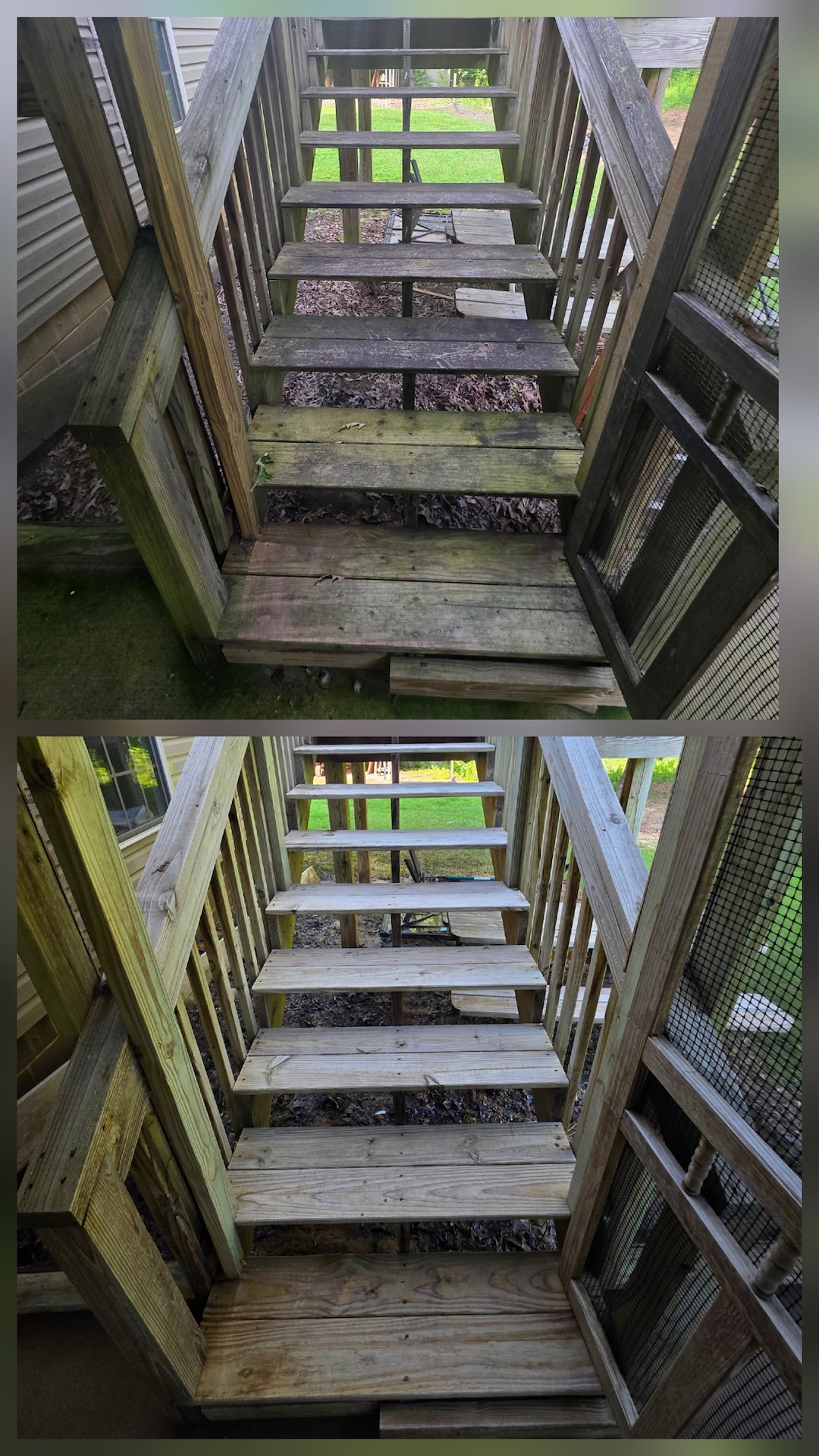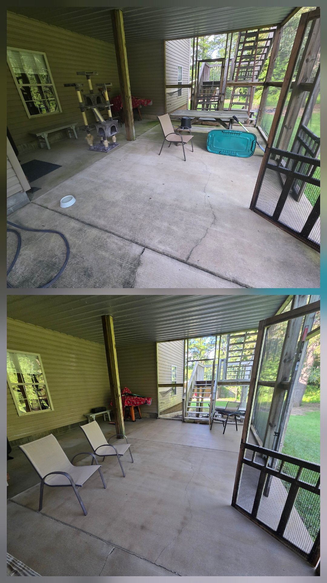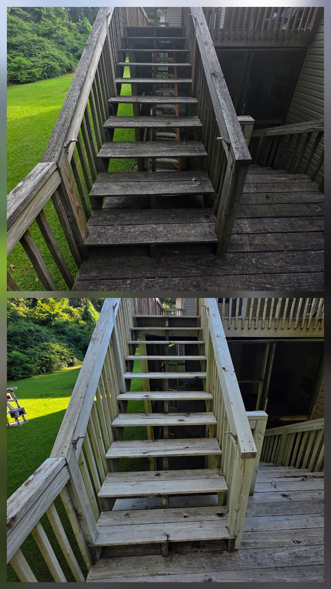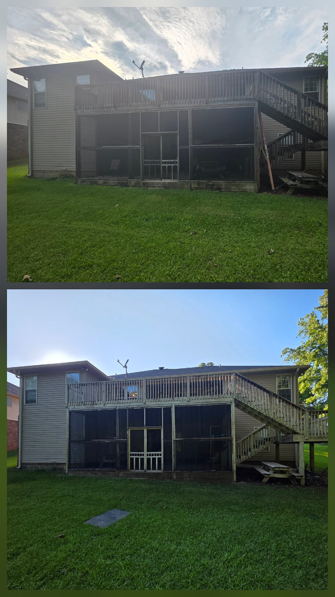 A customer in Northport, AL called to order a package of services. This particular customer wanted a house washing, wood cleaning, and a concrete cleaning for his home. The customer stated that the home's exterior was somewhat neglected over this last few years while taking care of a loved one who had recently passed. The customer stated that he was starting to get around to all of the things that needed to be taken care of, but realized real quick that this was not a job that he could take on while also running his own business. We assured him that we'd get him taken care of, and after sending him the quote, he accepted and the job was scheduled.