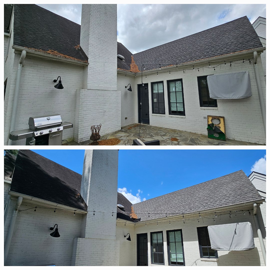 For her gutter cleanout, we removed all of the built up pine straw in the gutters and flushed the gutters and down pipes with high pressure water to ensure the gutter system was working as designed. The customer thanked us for the work & prompt service, and said she'd definitely be calling again for the next project.