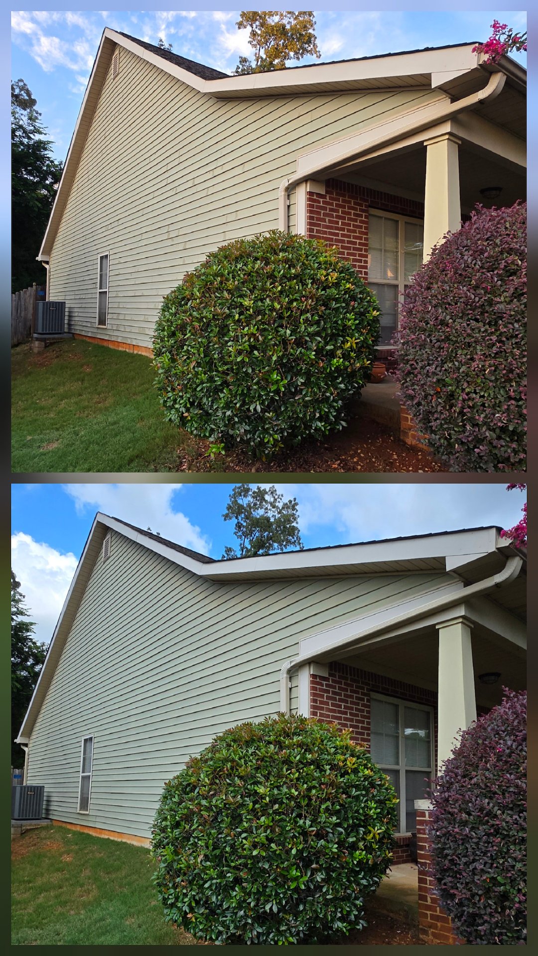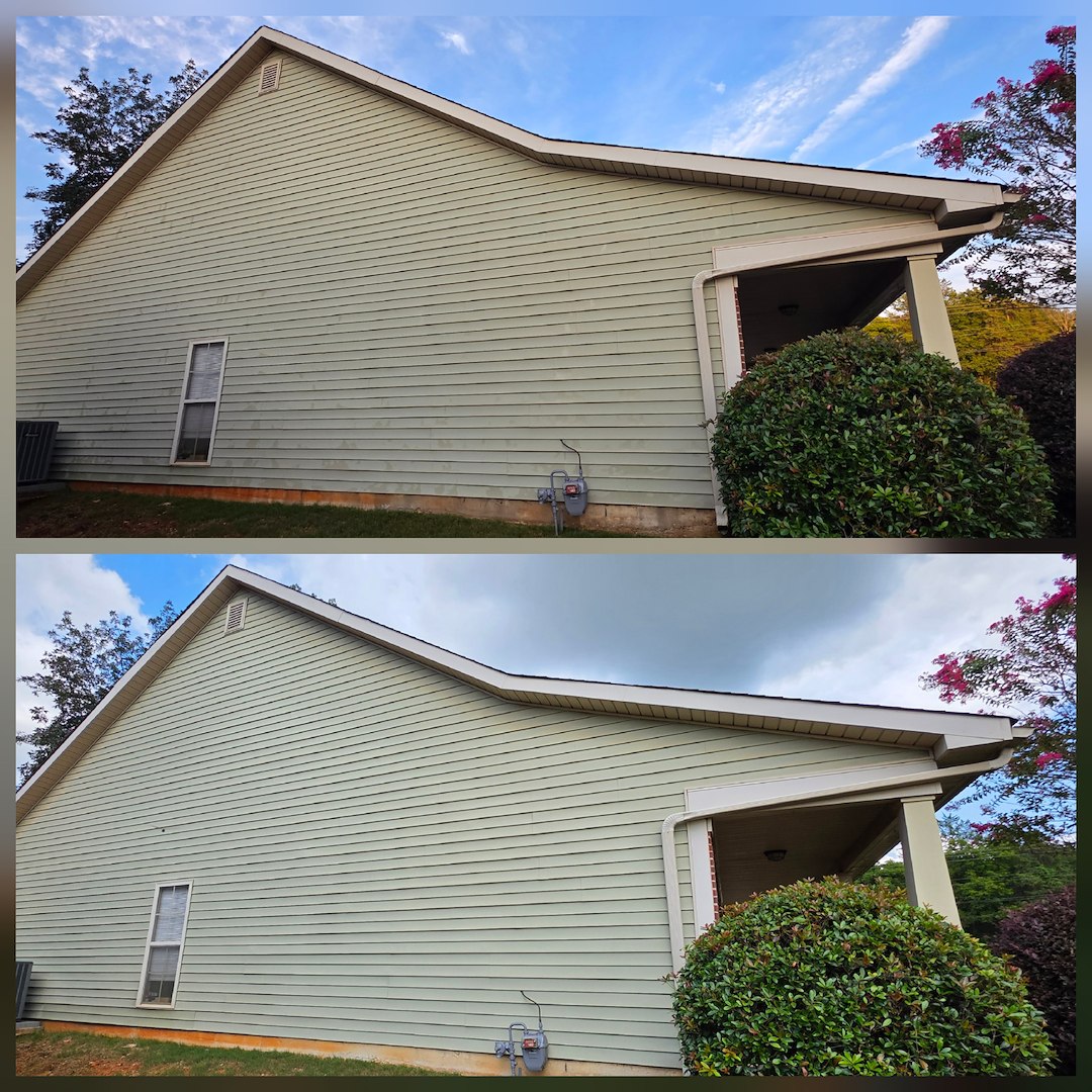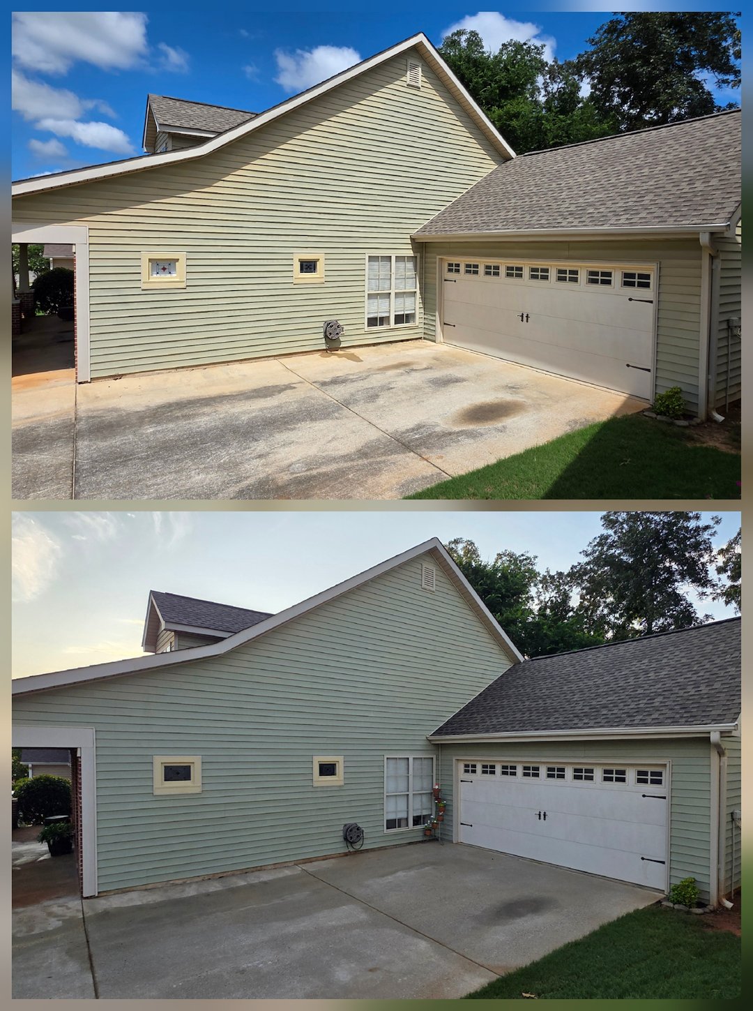 Customer hired us for an oxidation removal and concrete cleaning for her home in Tuscaloosa, AL. The customer had grown disgusted with the look of the oxidation that had taken place on the face of the vinyl on the outside of her home and wanted us to get rid of it so she could see the beauty of the vinyl in it's true form. While we were there, the customer asked if we had time to clean her driveway as well. After taking a look at the schedule for the day, our technician determined that he could get it done and added it to the service for the day. At the end of the day, the home's vinyl siding was back to looking new again and the concrete was the cleanest the customer had ever seen.