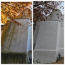 The soft wash, roof cleaning, and concrete cleaning took right at 3 days to complete due to the complexity of the job and the age of the algae that had been growing on the stucco of the home. When cleaning stucco, it is imperative that low pressure be used and to ensure that all of the algae has been killed down to the roots to prevent further growth.
